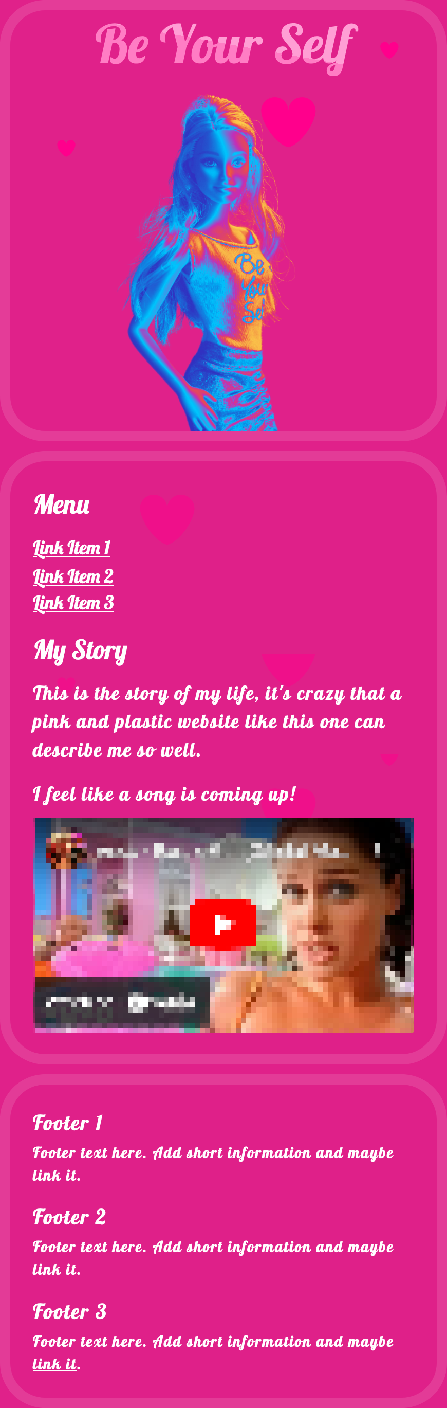 A Barbie-themed HTML 1-page template for a fun website for your own personal project. The images show how it would look on a desktop/laptop and mobile device.